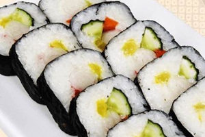 紫菜包饭是一道十分常见的韩国料理,起源于朝鲜王国时期。韩国美食界的官方称呼为“朝鲜式紫菜包饭”。常见的做法是用紫菜将煮熟的米饭与蔬菜、肉类等包卷起来。