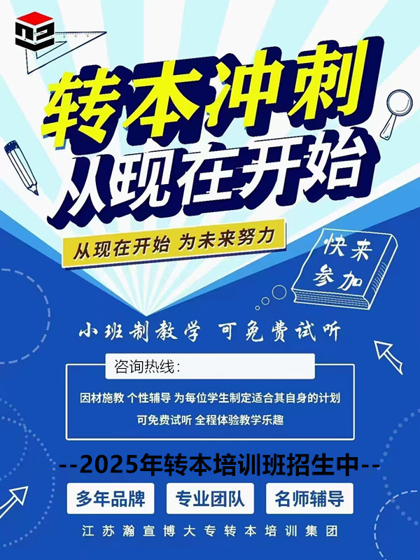 江苏瀚宣博大专转本暑期辅导班招生中……所有科目全开课,全年滚动开课,可以随到随学,江苏13市1-5年级高职生均可以参加,一次报名可循环上课至考前,越早报名课时量越多,基础越扎实。