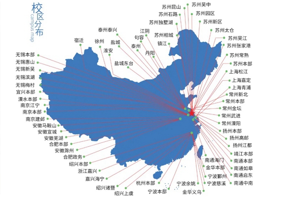 截至2019年,在嘉兴、南京、无锡、常州、扬州、杭州、宁波、金华、嘉兴、绍兴,芜湖、滁州等地拥有70余家校区的综合类培训机构。